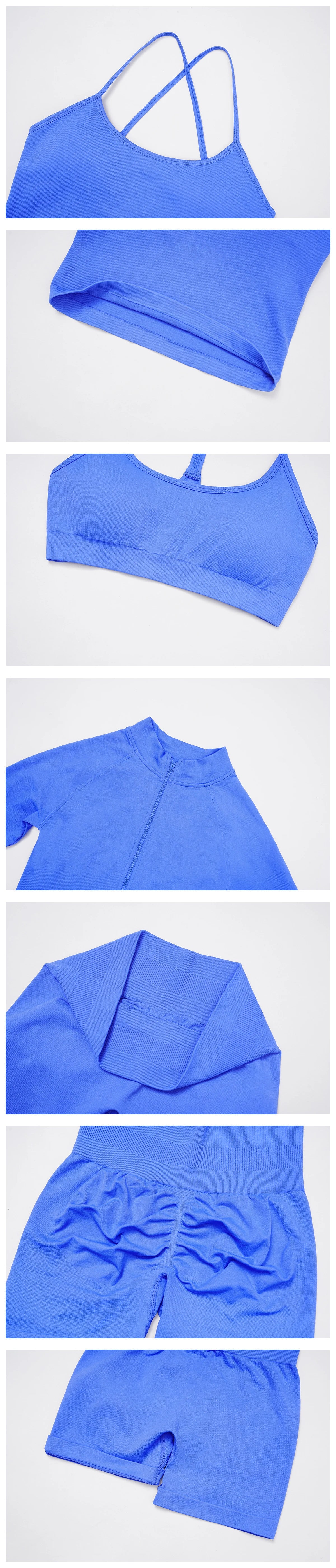 Women’s 2PCS Seamless Yoga Set – Zipper Long Sleeve Crop Top and High Waist Leggings