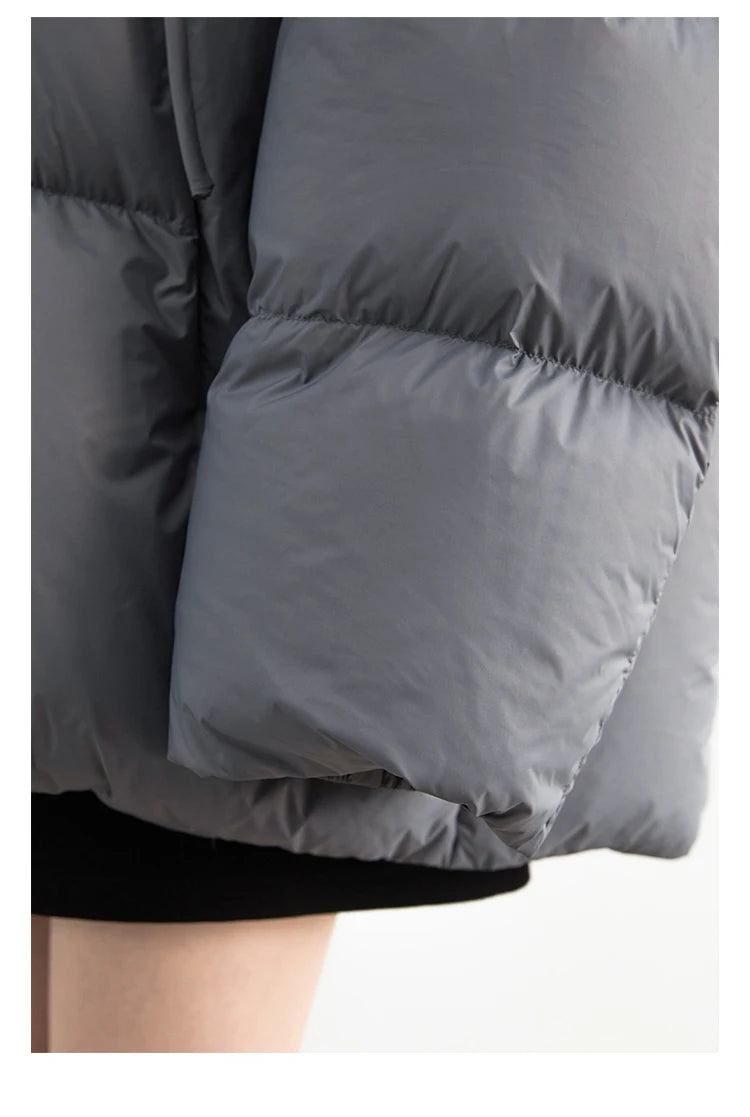 Crafted from premium nylon with a luxurious 90% white duck down filling, this hooded puffer coat delivers exceptional warmth without excess bulk. The 200-250g weight provides optimal insulation for autumn and winter seasons, while the full-length sleeves and regular cut offer versatile styling for professional and casual settings. Featuring a secure zipper closure and soft, opaque construction, this wide-waisted silhouette flatters various body types. The polyester lining ensures durability and comfort against the skin. Available in sophisticated grey, coffee, and white finishes, this office-ready coat combines functionality with refined elegance for the modern woman.