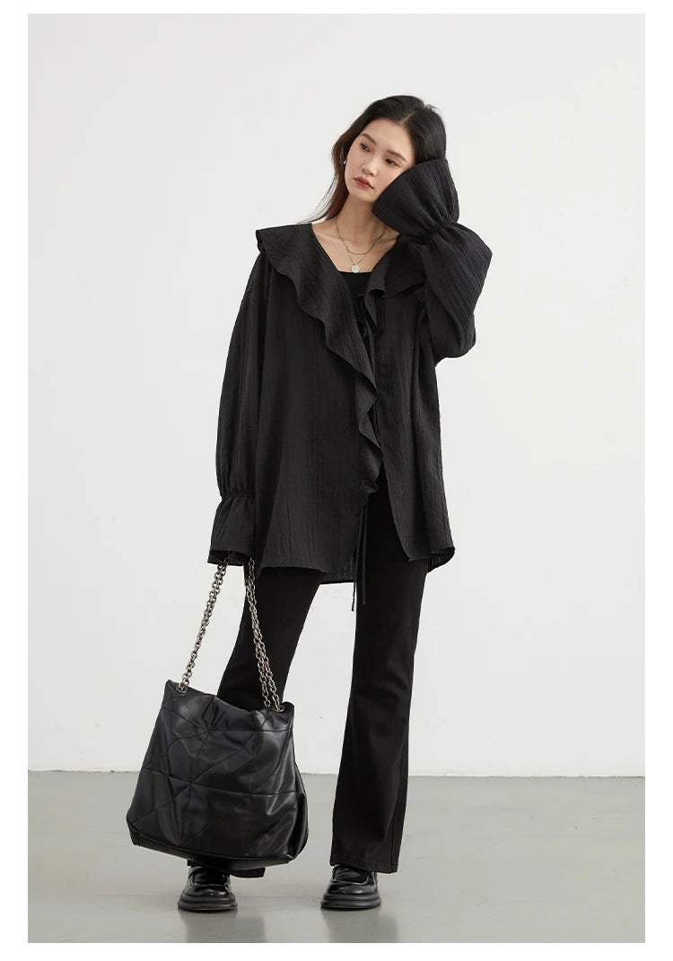 Ruffled V-Neck Lace-Up Blouse – Spring 2025 Collection